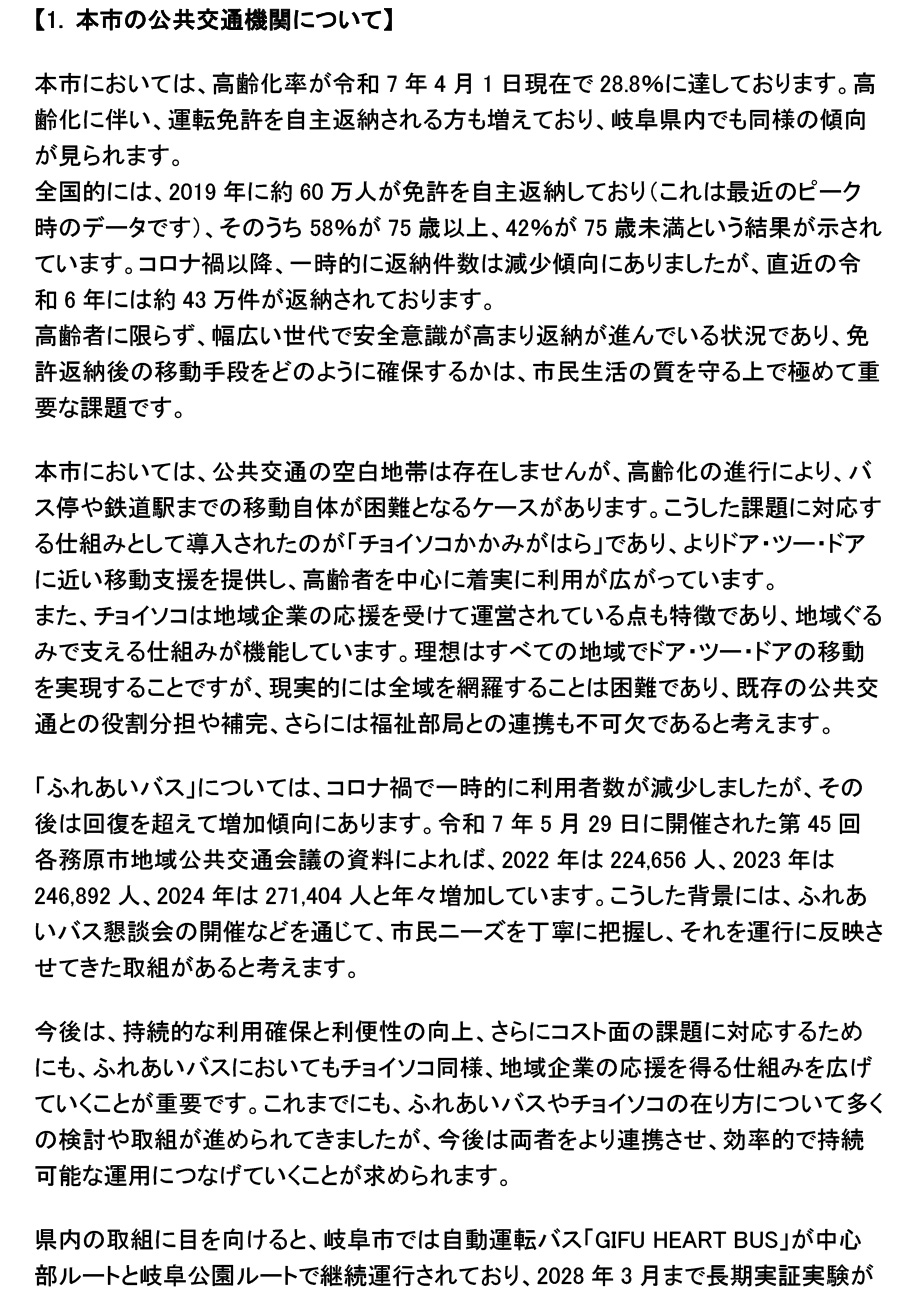 令和7年第3回各務原市議会定例会一般質問(質問詳細)